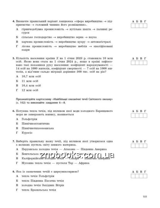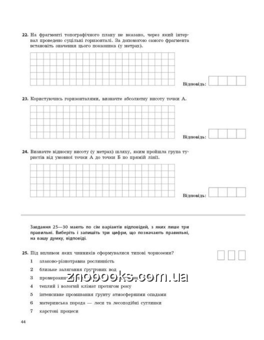Видання є збірником тестів з географії, що містять Усі основні типи завдань, які використовуються під час національного мультипредметного тесту. У посібнику наведено відповіді до всіх завдань. Посібник має електронну підтримку. Призначено для учнів закладів загальної середньої освіти, абітурієнтів і вчителів географії.