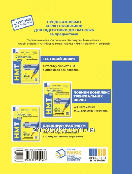 Математика. Тестовий зошит до НМТ 2026 : Захарійченко Ю., Школьний О. видавництво Ранок.