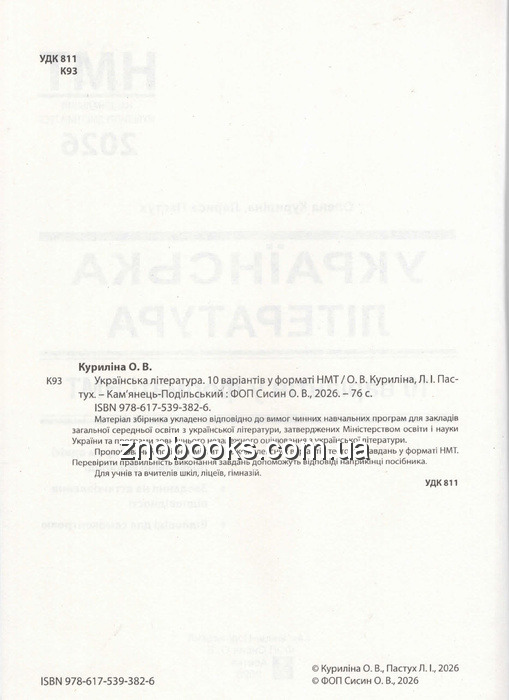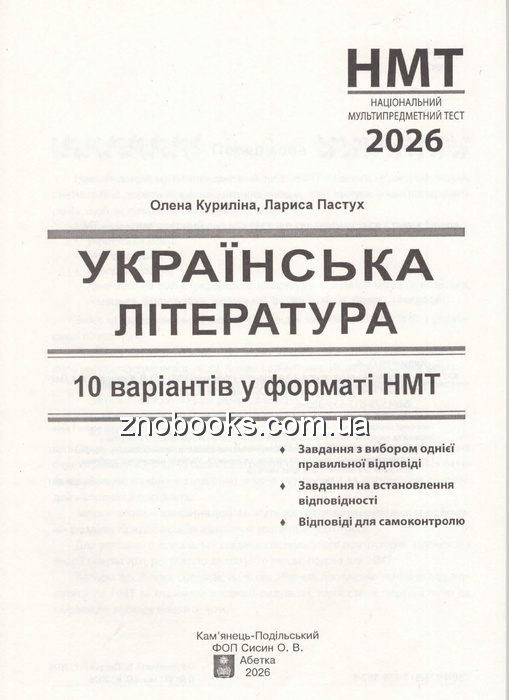 НМТ 2026 Українська література. 10 варіантів у форматі НМТ : Куриліна О. Видавництво Абетка.