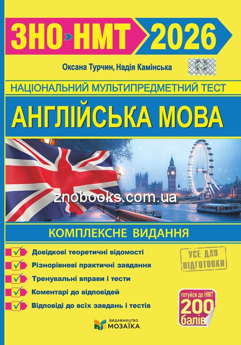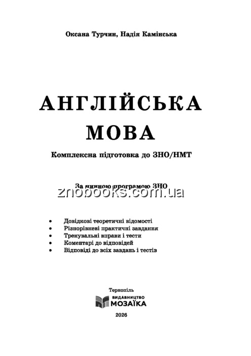 ЗНО НМТ 2026. Англійська мова. Комплексне видання : Турчин О., Камінська Н. Видавництво Мозаїка. купити