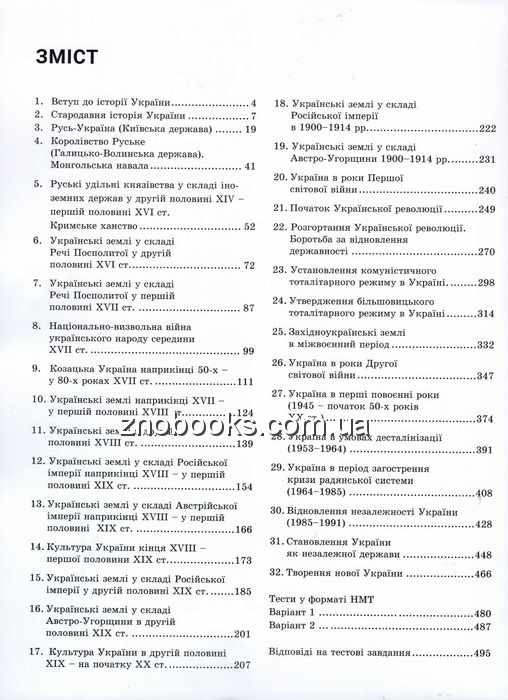 Наприкінці посібника подано два варіанти тренувальних тестів з історії України у форматі НМТ відповідно до специфікації, розробленої "УЦОЯО. Внконавши кілька запропонованих варіантів, переконаєтеся, наскільки rрунтовно ви опанували курс історії "України та чи готові до складання зовнішнього незалежного оцінювання (національного мультитесту), з'ясуєте, чи потрібно повертатися до якихось тем.