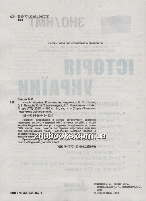 ЗНО НМТ 2026 Історія України. Комплексне видання : Власов В., Панарін О., Топольницька Ю. Видавництво Літера.