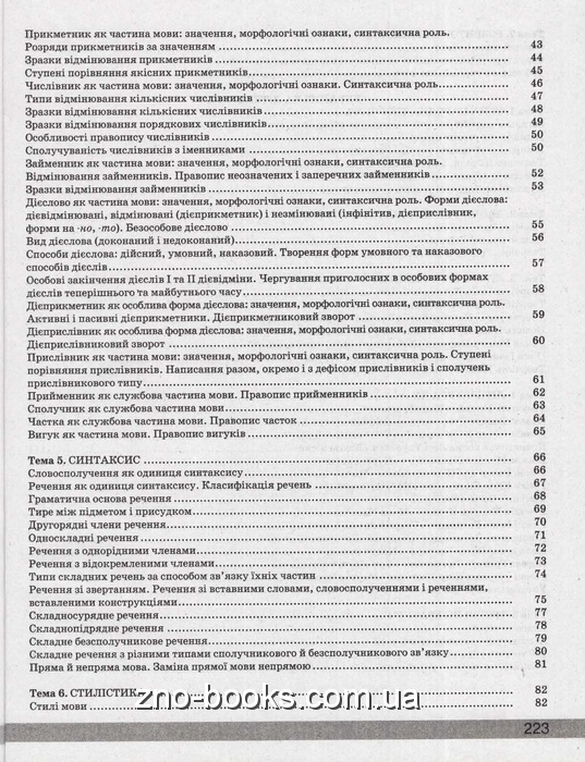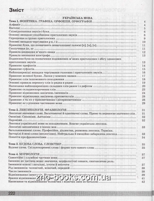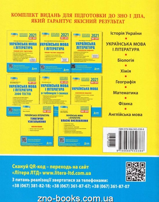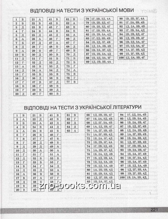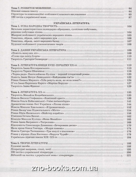 Після теоретичних мовного та літературного блоків є по 100 узагальнювальних тестових завдань із відповідями для закріплення знань та самоконтролю.