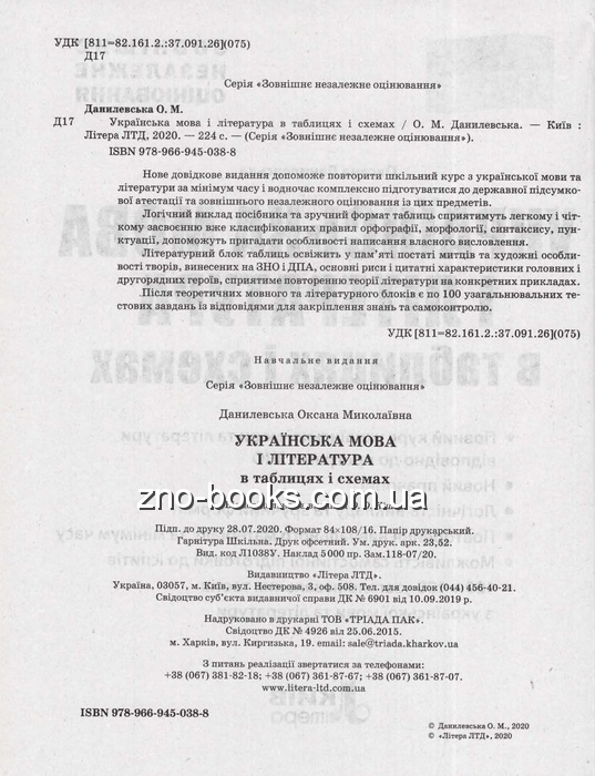 ЗНО НМТ Українська мова і література в таблицях і схемах : Данилевська О. Видавництво Літера.