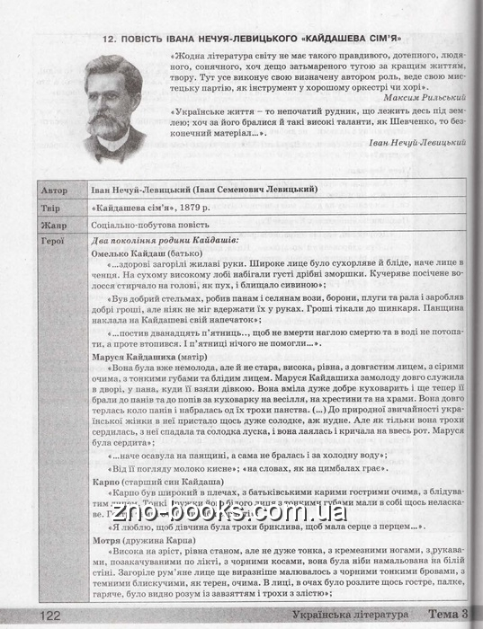 Літературний блок таблиць освіжить у пам'яті постаті митців та художні особливості творів, винесених на ЗНО і ДПА, основні риси і цитатні характеристики головних і другорядних героїв, сприятиме повторенню теорії літератури на конкретних прикладах.