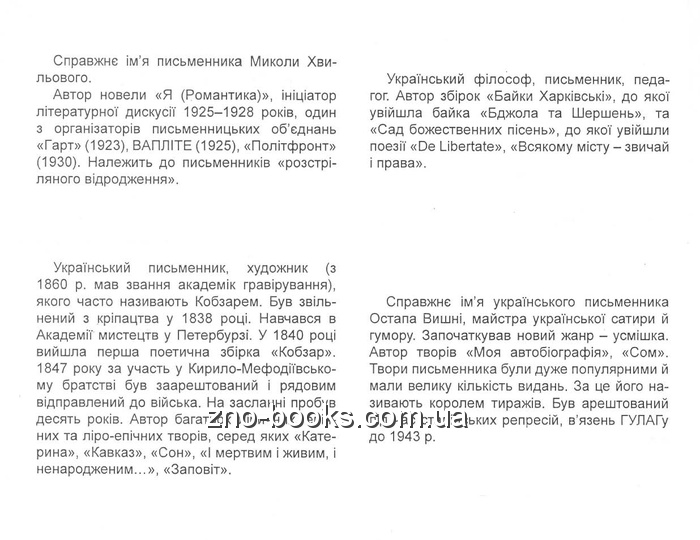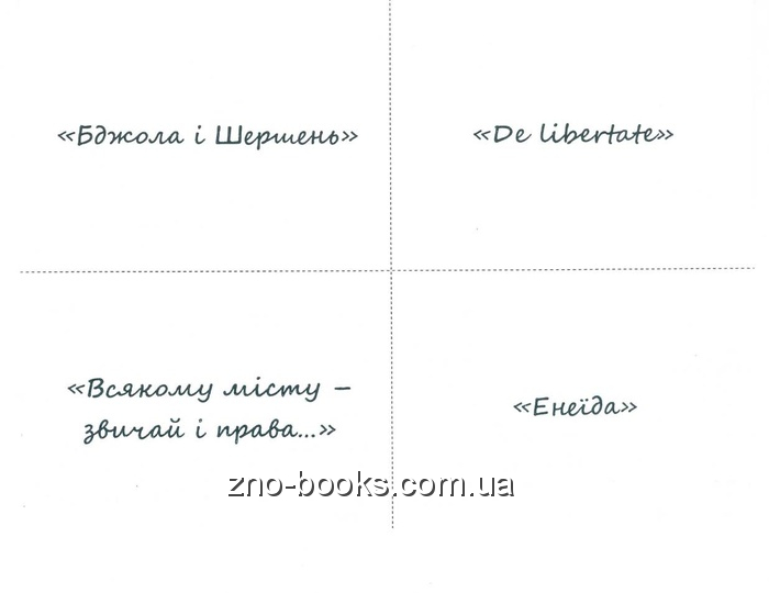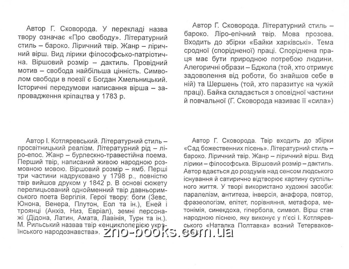 Завдяки опорним знанням про автора та художній твір Вам буде набагато легше відтворити й використати необхідну інформацію під час вступних випробувань та впевнено й успішно впоратись із тестовими завданнями.